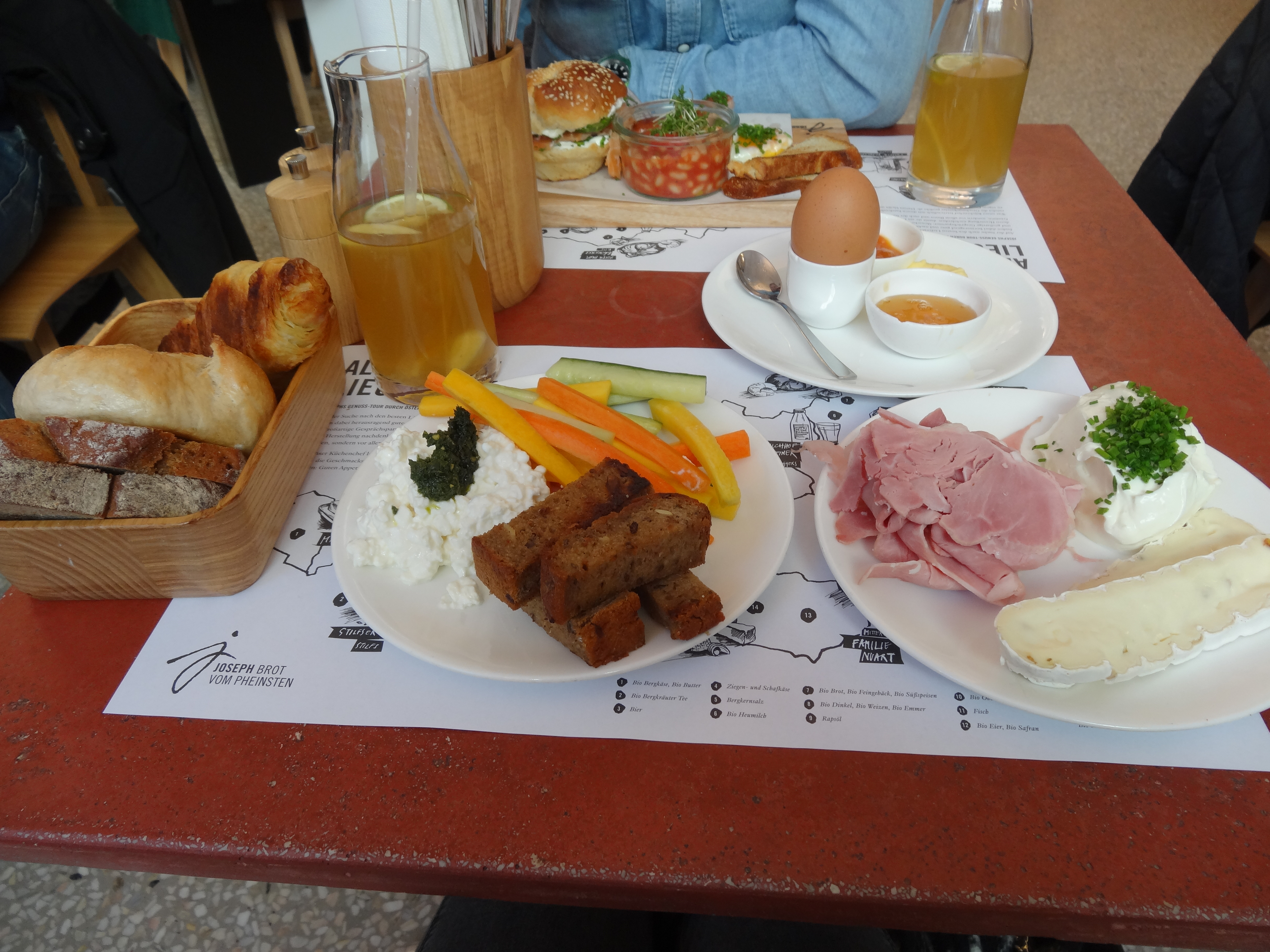 Zwei Minuten nach unserer Bestellung hatten wir unsere Getränke am Tisch. Das Soda Zitrone gab es mit einem frischen Zitronensaft, den Café Latte in einer großen Schale, der Tee war ein Grüntee mit ein wenig Ingwer und zu guter Letzt einen guten frischgepressten Orangensaft.