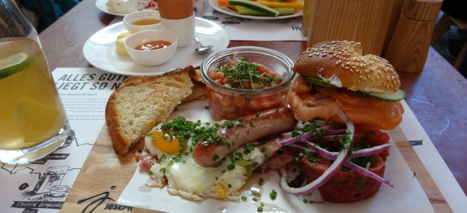 Rasch kam auch unser Essen, es gab zweimal „Volle Kraft Voraus“, ein „All Day Breakfast Sandwich“ und ein „Early Bird Frühstück“.